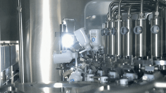灌装机,经过除静电、除尘、翻转瓶口朝下的步骤,可有效减少瓶内异物
