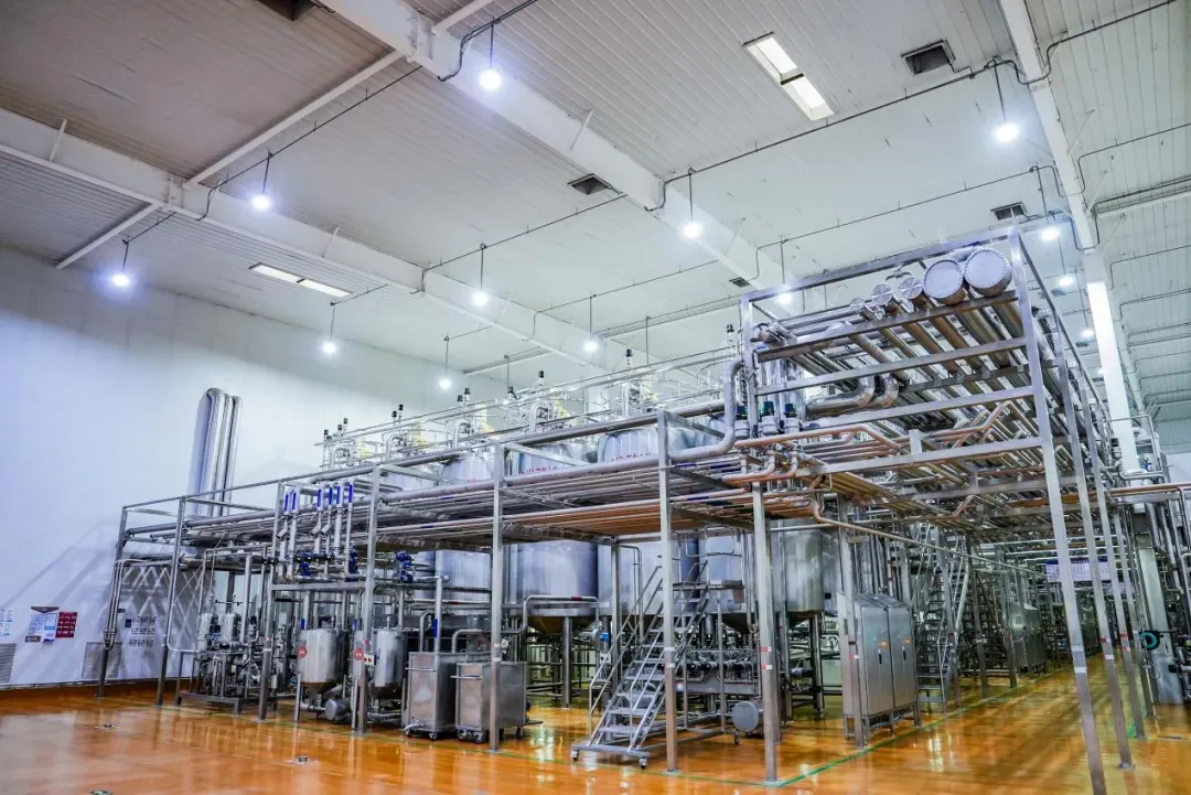 完成这些精细预处理后,生乳将在前处理车间开启一段“奇幻旅程”。在密闭的罐体与管道中,生乳静静流淌。期间,所有关键参数——温度、压力、流速、搅拌时长——全部由系统自动精准调控。令人惊叹的是,这样一个现代化车间仅需7名工作人员,远少于行业常规配置。这种"让人走开"的理念,正是从物理层面杜绝人为污染的可能。