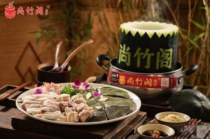 以整只黑皮冬瓜为盅