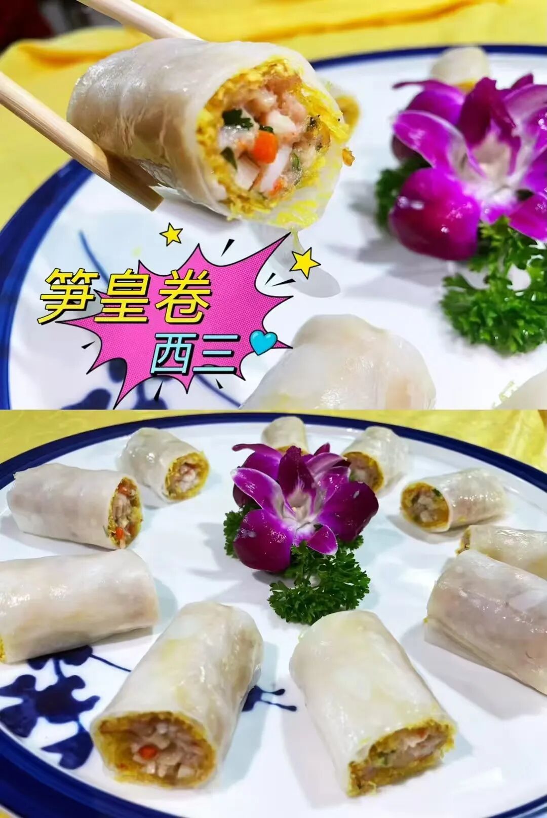 用薄粉皮包裹吊丝丹笋
