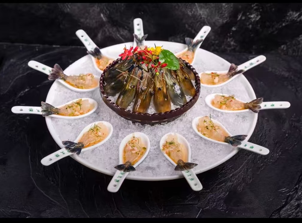 鲜活的虾肉制成刺身